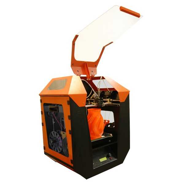 Полуавтоматическое открывание дверцы и фиксация ее в верхнем положении обеспечивает удобный доступ к рабочей камере 3D принтера. Дверца принтера изготовлена из прочного прозрачного поликарбоната, который придаёт ему ещё более эстетический вид и позволяет наблюдать за процессом печати.